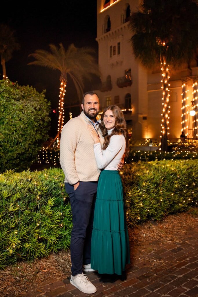 St. Augustine’s Nights of Lights is one of the most magical times of the year — millions of twinkling white lights, historic architecture glowing in the background, and a festive energy that fills every corner of downtown. As a proposal photographer in St. Augustine, I spend this season capturing countless surprise engagements, and let me tell you: there is truly nothing like proposing during Nights of Lights.